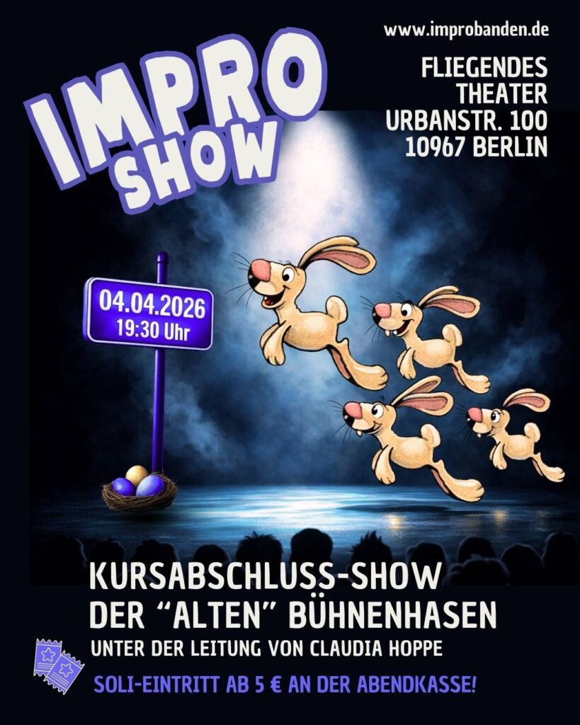 Der Fortgeschrittenen-Kurs steht kurz vor seinem großen Moment: Zum Abschluss der aktuellen Kursrunde präsentieren die Teilnehmerinnen und Teilnehmer eine Impro-Show und laden das Publikum zu einem Abend voller spontaner Szenen, witziger Momente und Überraschungen ein.